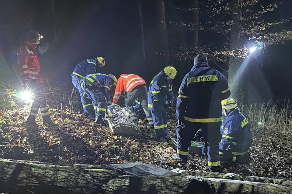 Hier spielen die Drohnen des DRK ihre Stärken aus. Mit Wärmebild- und Nachtsichtkameras, Antikollisionssystemen und Laserentfernungsmesser ist Fliegen in dieser schwierigere Umgebung möglich. Auf Grund der fortgeschrittenen herbstlichen Entlaubung der Bäume war der gesuchte Waldarbeiter bereits nach 10 Minuten lokalisiert und der Rettungseinsatz durch das THW mit schwerem Gerät begann. Das THW leuchtete den Waldrand aus. Mit dem Scheinwerfer der Drohne konnten der „Unglücksort“ ausgeleuchtet werden. Das sorgte nicht nur für Licht, sondern diente nebenbei als gute Orientierung für die Einsatzkräfte.